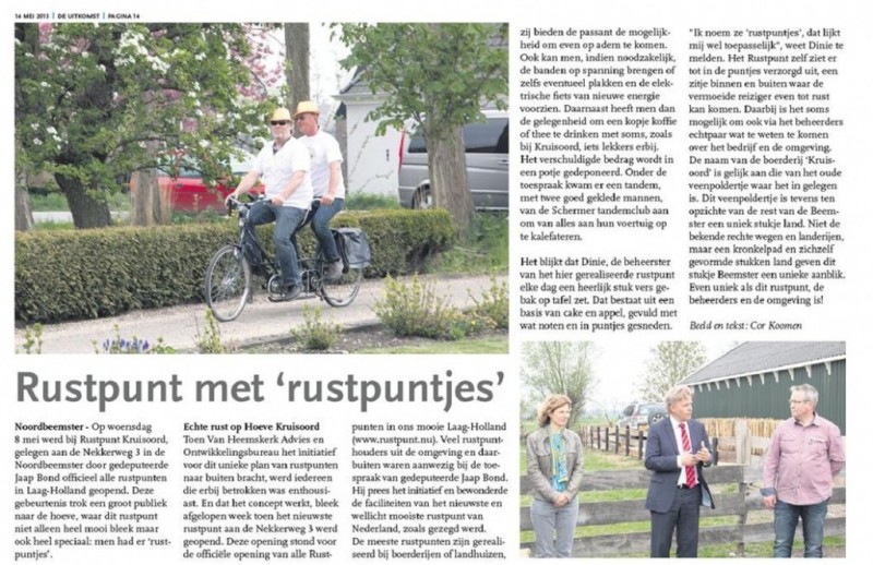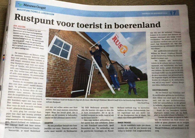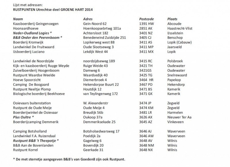 Tijdens de opstartbijeenkomst voor alle rustpunthouders in de Achterhoek was er veel nieuws te melden. Behalve in de Achterhoek en Veluwe zijn er ook rustpunten in Noord-Holland, Utrecht, Overijssel en Groningen. Plannen zijn er in de overige provincies en zelf over de grens!