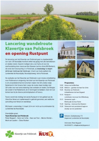 Wethouder Paul Boogaard (toerisme): “Ik ben ontzettend blij met het enthousiasme en grote aantal aanmeldingen voor de rustpunten langs onze fiets- en wandelroutes. Het is mooi om te zien hoe de inwoners en ondernemers betrokken zijn bij het verbeteren van onze recreatieve voorzieningen. Met de komst van de rustpunten is de natuur en het agrarisch polderlandschap nu nog toegankelijker voor bezoekers en inwoners. Op een aantal locaties kunnen bezoekers ook kennis maken met onze lokale producten, waardoor het toeristisch-recreatieve aanbod op een mooie manier wordt gepresenteerd.”