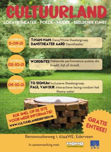 Met plezier mogen we u melden dat we dit jaar weer het Cultuurland festival mogen geven. Door de huidige regelgeving ziet het festival er iets anders uit.