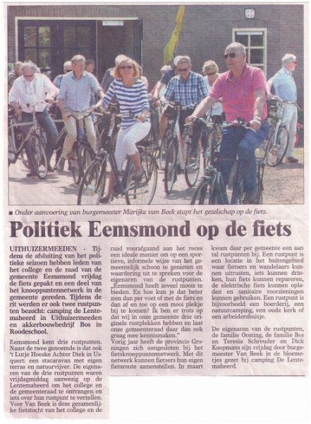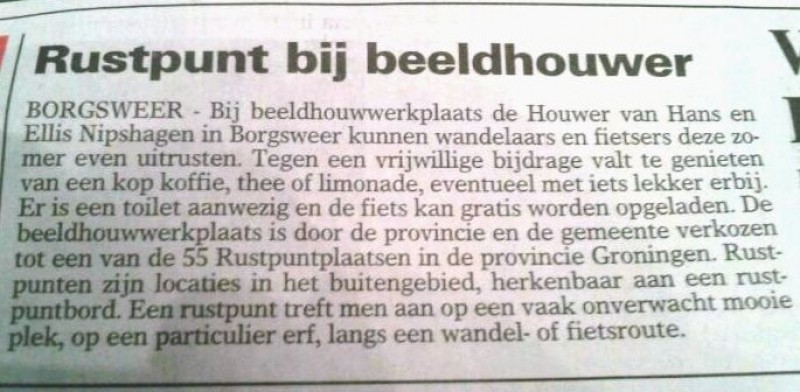 Donderdagavond 14 maart organiseert Stichting Rustpunt een startavond in Plaats Melkema, Smedemaweg 3 in Huizinge. De Groningse rustpunten zijn onderdeel van het nieuwe Fietsknooppuntennetwerk in Groningen. Dit project wordt uitgevoerd door de provincie Groningen, in samenwerking met veel andere Noord-Nederlandse en Noord-Duitse partners. Het Fietsknooppuntennentwerk is ondergebracht bij het Europese Interreg-project 'Netzwerk Toekomst', dat gericht is op de regionale versterking van de toeristische sector.