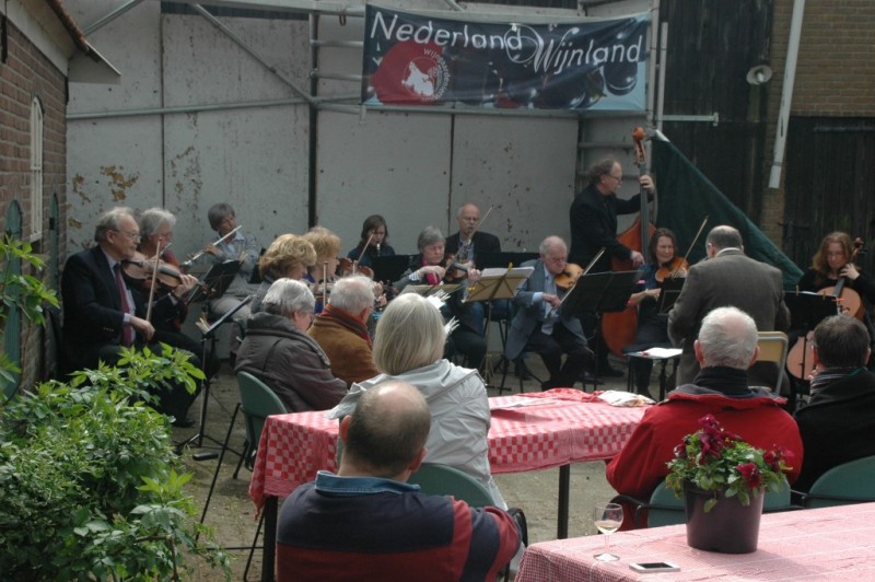 Op Zondag 28 April vanaf 13.30 uur speelt het orkest Scaramouche onder leiding van dirigent Arminak Apstok stukken van Bach en Handel in de Wijngaard. Een Ode aan de Druif - buiten – want daar groeien de druiven beter van.