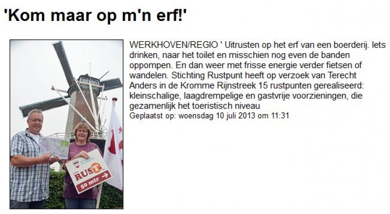 Er zijn nu ook Rustpunten bij De IJsboerin aan de Thijs Cornelisweg 2 in Rockanje, Het Kippenhok aan de Biertsedijk 11 in Simonshaven, De Groene Waal aan de Ooievaarsdijk 6 in Zwartewaal en Vers van Voorne aan de Konneweg 4b in Tinte. Numero zes bij Zicht op Nieuw-Hellevoet aan de Kleiweg 12 in Hellevoetsluis volgt later dit jaar.