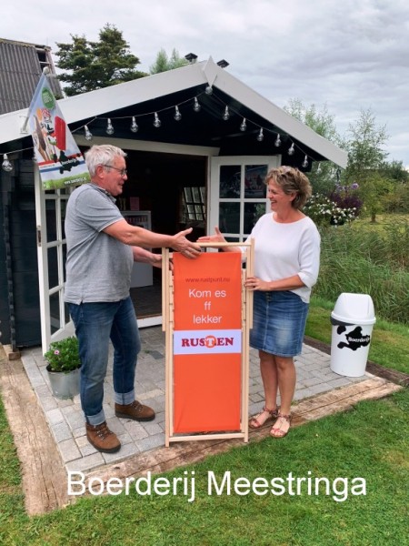,,Het leuke aan dit soort Rustpunten is ook dat mensen de sfeer beleven. Kijk en luister, je ziet en hoort hier de koeien en de lammetjes, je ruikt de geur van het boerenbedrijf”, zegt directeur Fred Heemskerk van de stichting Rustpunt bij de onthulling van het bord. Hij opende in 2005 op zijn boerderij in Salland het eerste Rustpunt. Inmiddels zijn er in ons land 660 van die plekken, vaak bij boerenbedrijven. De bedoeling is dat dat er nóg meer worden, vooral in Zuid-Holland waar het aantal erg achterblijft. ,,Juist in coronatijd bleek dat mensen behoefte hebben aan zo’n Rustpunt. In de polder zijn weinig voorzieningen, vaak zit er geen horecagelegenheid. Dan is dit een prima oplossing”, legt Heemskerk uit.