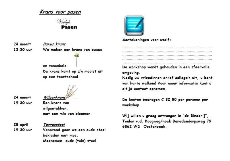 We gaan dit doen op ZATERDAG 11 MEI aanstaande.