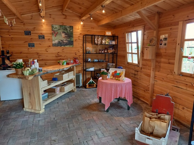 Iedereen is welkom voor een bezoekje aan onze boerderijwinkel, waar we deze zomer ook roomijs van eigen geitenmelk hopen aan te bieden, en een kopje koffie of thee uit het Rustpunt dat aan de voorkant van de winkel gemaakt is. Er is ook speelgelegenheid voor de kinderen en de mogelijkheid om elektrische fietsen op te laden. In de winkel kun je zowel pinnen als contant betalen.