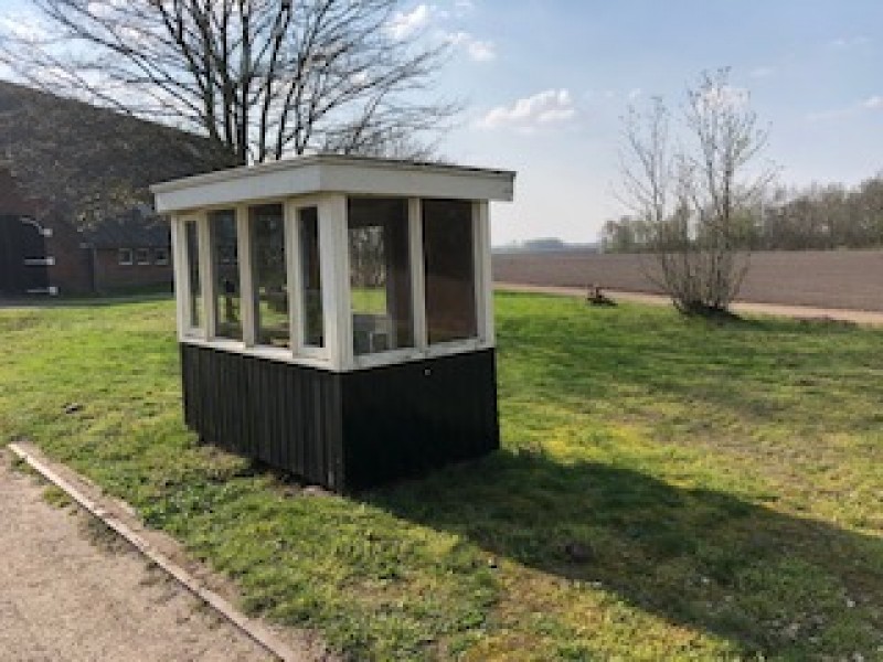Ons rustpunt is gesitueerd in een eikenhouten gebintwerkje met een gepotdekselde gevel bekleding. Naast het rustpunt liggen een groot aantal granieten zwerfkeien. Deze zijn tijdens en na het ontginnen aan de oppervlakte gekomen . Tegenover het rustpunt bevindt zich nog een oud weeghokje, welke in dienst stond van de graanoogst.