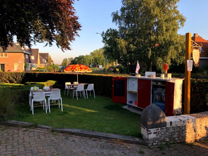 In de tuin onder de oude beukenboom is het Rustpunt ingericht om u de gelegenheid te bieden van een kop koffie of thee met wat lekkers te genieten. De koek of taart die voor u klaarstaat wordt gebakken door een aantal inwoners van Holwerd en de opbrengst hiervan gaat naar een door hen zelf bedacht kleinschalig goed doel.