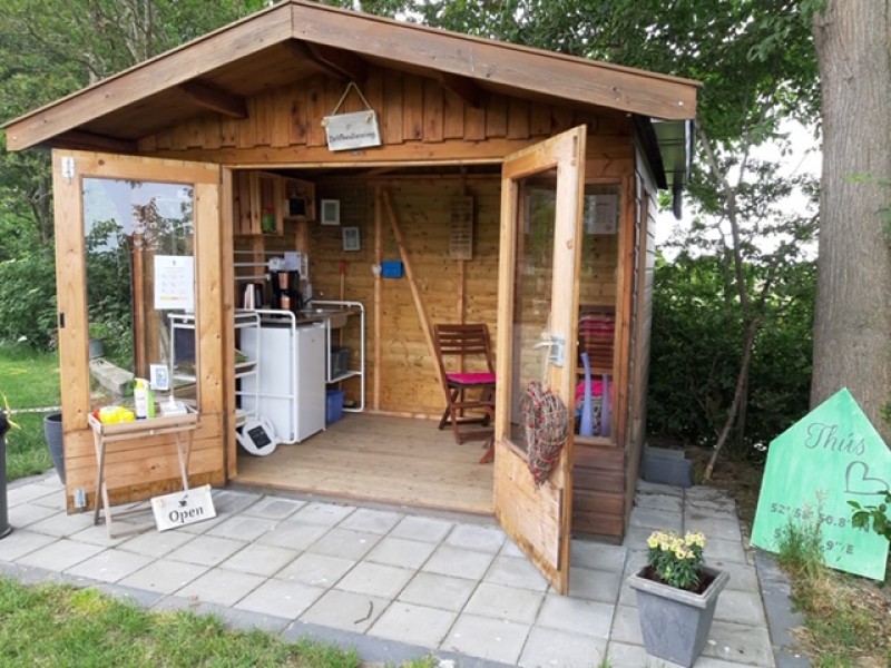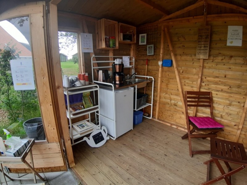 In ons rustpunt kunt u genieten van een kopje koffie of thee met wat lekkers. Ook staat er een koelkast met inhoud voor u klaar. Genoeg keuze. Bij slecht weer kunt u in het huisje schuilen. U kunt uw elektrische fiets opladen en ook is er een bandenplakset te vinden.