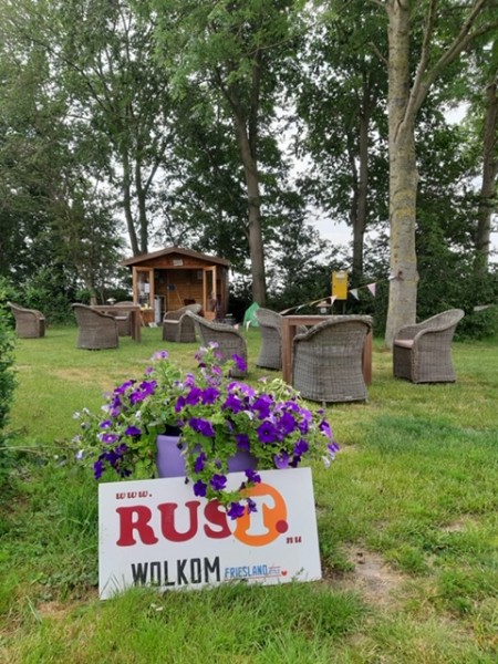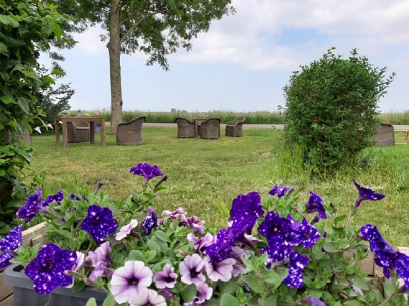 Theeschenkerij-tuinMidden in de natuur, de landerijen met uitzicht op onze koeien en paarden en met op de achtergrond Workum is ons rustpunt te vinden.