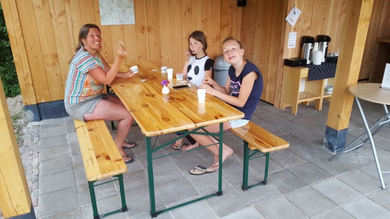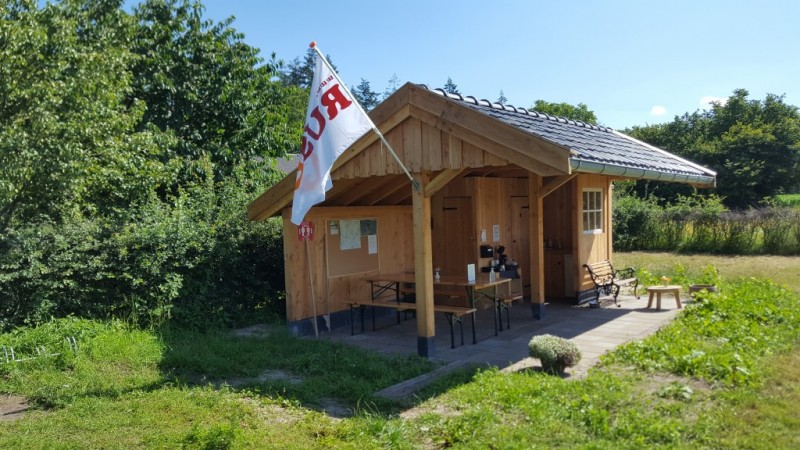 Fietsers en wandelaars kunnen hier even uitrusten, gebruik maken van het toilet, afkoelen in de schaduw van de overkapping of genieten van het zonnetje met een kopje koffie, thee of een heerlijk ijsje van ijsboerderij ’t Dommerholt uit Borculo.