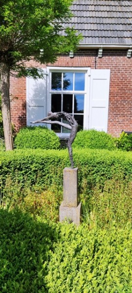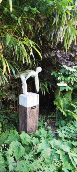 In de beeldentuin staan beelden van kunsthars, gemaakt door Anneke Mensink, beeldend kunstenaar en eigenaar van de beeldentuin. Je kunt er rondlopen en er zijn verschillende plekken waar je kunt gaan zitten om van de beelden te genieten. De beelden die op meerpalen staan, geven een reflectie op de coronatijd en het verlangen naar vrijheid. Ze hebben titels als: Lock Down, Beschermd, Quarantaine, Huidhonger, Immunitiet, Protest etc. De kunstenaar daagt je uit je te realiseren hoe waardevol je vrijheid is.