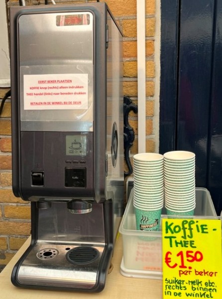 U bent VAN HARTE WELKOM voor een kopje koffie, thee, frisdranken, ijs en koek . Door middel van zelfbediening kunt u zich altijd zelf redden.