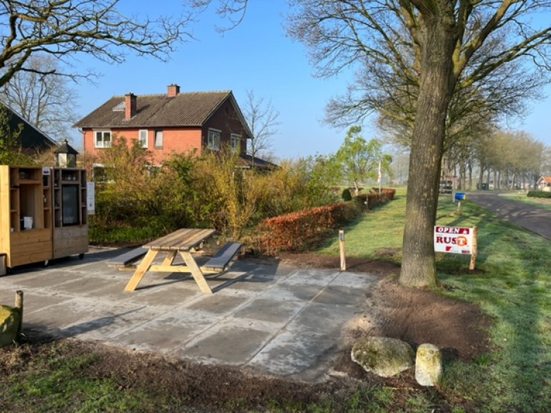 Vanaf het rustpunt kunt u heerlijk genieten van de rust en het mooie Twentse landschap. Dit alles onder het genot van een kopje koffie/thee of een heerlijk ambachtelijk fruitsapje.