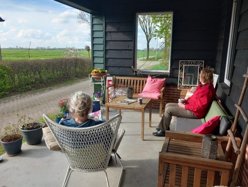 Even op adem komen kan bij ons in de patio. Je kan daar schuilen voor de zon of de regen, of juist in de zon zitten. Met zicht op de molens en een kop koffie in de hand ben je dan zo weer opgeladen. En zo niet, dan blijf je nog lekker even zitten.