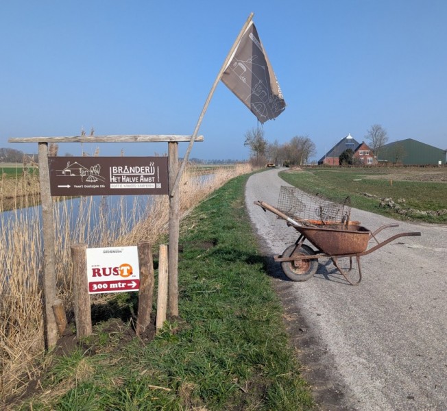 Branderij Het Halve Ambt brandt semi-dagelijks verse kwaliteitskoffie's waarvoor we de boer een goede prijs betalen en waarvan de teelt het klimaat geen geweld aan doet. Maar behalve koffie kun je bij ons ook een kopje thee, ranja, diksap of water komen drinken, met of zonder koek erbij. Of je band oppompen, even kijken in de branderij, in de foto-expo over herkomst en teelt van koffie of gewoon uitrusten en wat rondbanjeren op onze natuurcamping, met prachtige panorama's over de landerijen rondom. Of je blijft lekker een nachtje slapen in je tentje, de pipowagen, de Vindskydd of het Natuurhuisje. Kajakkers, roeiers en zwemmers ook welkom!