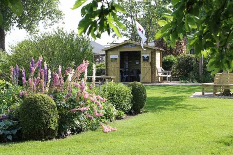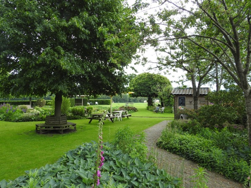 Je kunt op ons rustpunt lekker ontspannen zitten rond de border met bloemen en tijdens het drinken van een kopje koffie, thee of een ijsje genieten van de rust.