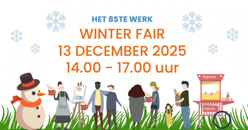 Er is van alles te proeven en te genieten; warme chocolademelk, glühwein, verse popcorn en winterhapjes voor jong en oud. Het wordt een gezellige middag voor het hele gezin, in de rustige en open sfeer die je van Het 8ste Werk kent. Deze Winterfair is de eerste in een reeks van meerdere fairs die we de komende jaren zullen organiseren bij ons aan de Zwartendijk. Wie net zo graag deelt als wij, nodigen we uit om twee potten groente mee te nemen naar de Winterfair zodat deze geplaatst en uitgedeeld kunnen worden in deelZe, de sociale supermarkt op ons erf.