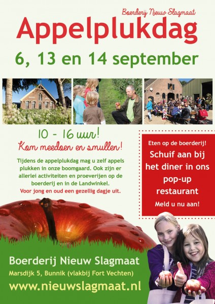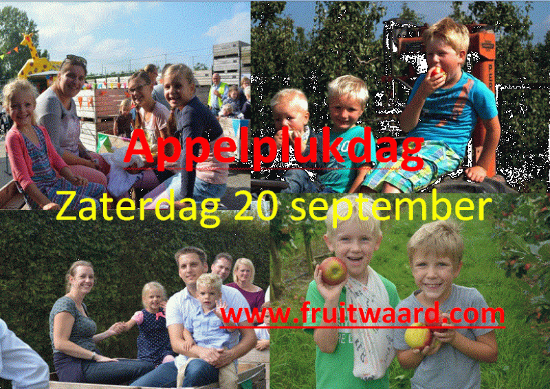 Zaterdag 13 september stellen wij ons bedrijf open voor publiek. Jong en oud kan deze dag zelf appels plukken in onze boomgaard.