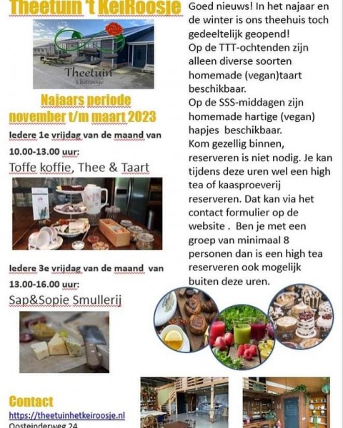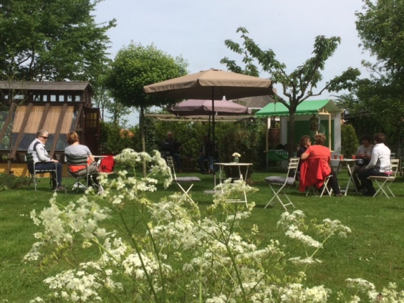Een gezellig terrasje, koffie met wat lekkers, ijs van de Steenoven, fruitsapjes en uiteraard uitzicht op de bloemen of de koeien van de buurman ;)