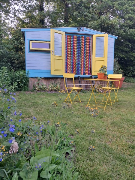 Op het terrein van rustpunt Oldenhave in Ruinen (Drenthe) kun je overnachten in een kleine knusse Pipowagen midden in de moestuin.