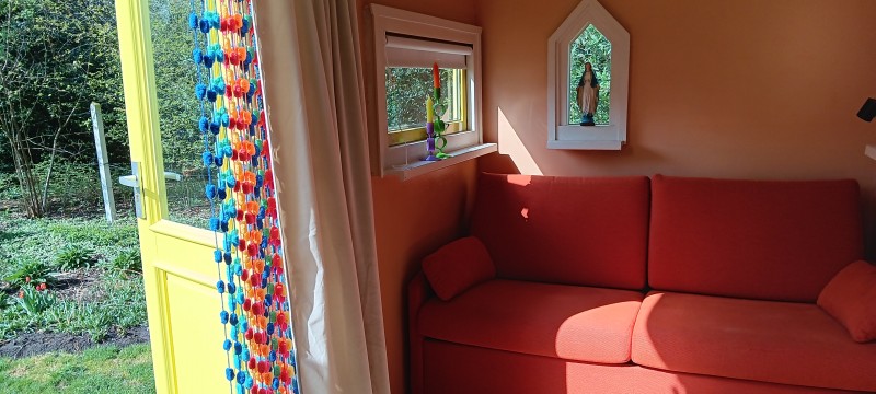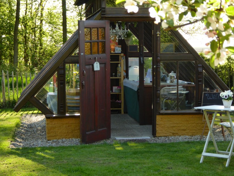 Je kunt voor 65 euro per nacht (minimaal 2 nachten) slapen in de moestuin en 's morgens wakker worden van het geluid van de vogeltjes.