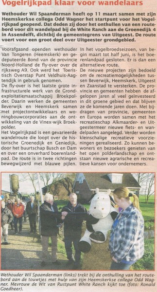 11 maart is er bij ons op het rustpunt het vogelvrijpad geopend door wethouders. wij zijn het begin en eindpunt van dit pad.