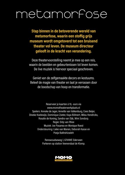 Voor actuele informatie over deze voorstelling en andere projecten van MOMO theaterwerkplaats kunt u ons vinden op Instagram en op onze nieuwe Facebook pagina.
