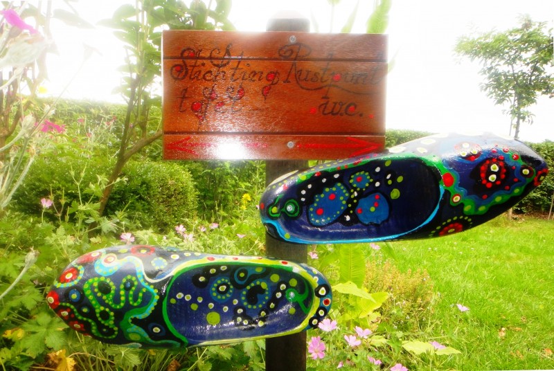 Last but not least: zijn er voor de Rustpuntbezoekers een richting aanwijzers voor de picknicktafel van 'Stichting Rustpunt' en het toilet, klompen maat 37... Prachtig... Het is nog leuker geworden voor onze bezoekers!