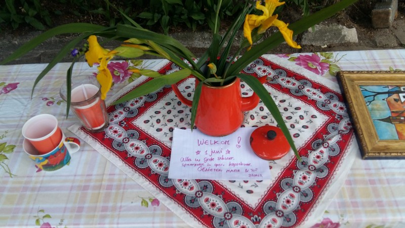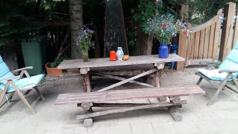 Het zonnetje schijnt, dus hebben wij gisteren de picknick tafel afgestoft en buiten gezet! Lekker vroeg dit jaar!